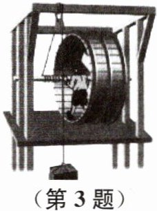 3 如图所示,欧洲中世纪建造城堡使用的吊车,是由定滑轮和轮轴组合而成的复杂机械,工人用脚踩动巨轮,可轻松地搬运沉重的石材.