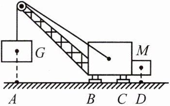 8 为了保证起重机在起重时不会翻倒,起重机右边配有一个重物M,现测得重物M的质量为4 t,AB为10 m,BC为4 m,CD为1 m.(取g= 10 N/kg)则: