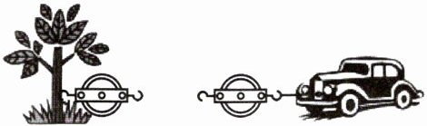 11 (2025 淮安模拟)如图所示,汽车陷入烂泥中,附近有一棵大树,车上有滑轮两只,绳子一根,如何用最小的力把汽车拉出来?在图中画出滑轮组绕法.