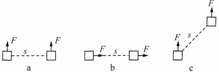 1 如图所示,a、b、c三种情况下,用大小相同的力F使同一物体沿不同的轨迹移动了相同的距离s,对于三种情况下拉力F所做的功分析正确的是(