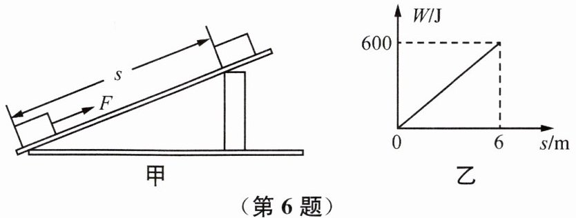 6 (2023南京玄武期末)一木箱重300N,工人用沿斜面向上的拉力F将木箱匀速拉到高处,如图甲所示,已知整个过程中拉力F做的功W与木箱沿斜面运动距离s的关系如图乙所示,整个过程的额外功是240J,下列说法正确的是(
