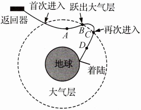 9 易错题 (2025 扬州仪征模拟)嫦娥五号返回器用类似“打水漂”的方式着陆地球(动力装置关闭),其着陆过程的部分轨迹简化如图所示. 关于此过程中的能量转化,下列说法正确的是(