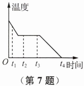 7 如图所示是某物质由液态变为固态过程的温度随时间变化的图像,由图可知$t_4$时刻,物体内能