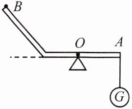 例4 如图所示,在轻质杠杆AOB的A端挂一重物G,要使杠杆在如图所示的位置平衡,请画出在杠杆上施加的最小动力$F_1$的示意图.