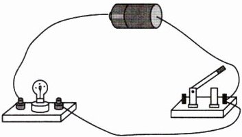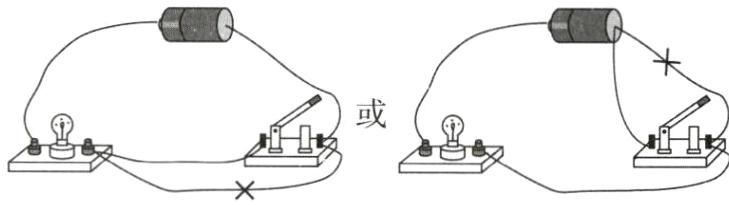 9 易错题 小明想用刚学习的电路基本知识,连接一个电路.于是他找来一个干电池、一个小灯泡、一个开关和若干导线,连接成了如图所示的电路图.