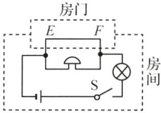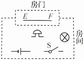 11 提素养 请设计一个自动防盗报警电路. 要求:晚间开关S闭合后,指示灯亮,电铃不响;当房门被打开时,细导线EF被扯断,指示灯亮并且电铃发声报警. 请你按要求连接电路图.