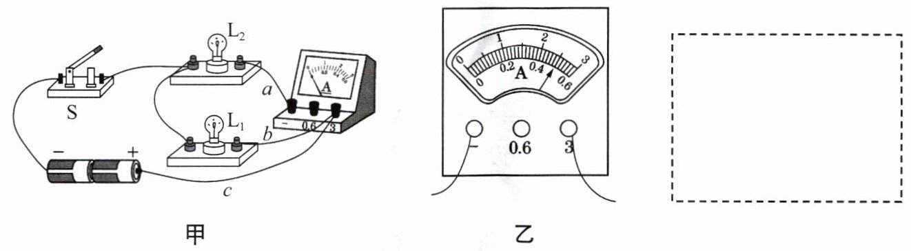 9 如图甲所示是用电流表测量电流的实物连接图,请按要求回答: