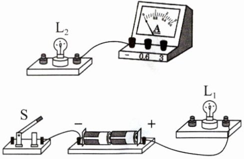 10 提素养 如图所示是未完成连接的实物电路,请用笔画线代替导线完成该电路连接.要求:两灯并联,开关S同时控制两灯,电流表测量$L_{1}$的电流,导线不能交叉.