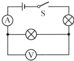 例3 (2023 潮州期末)在图中两个圆圈内,分别填入“灯泡”和“电压表”的符号,开关闭合时两灯均能发光.