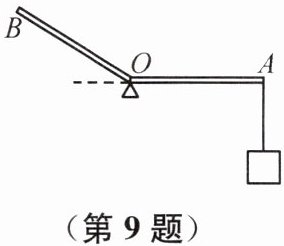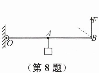 8 如图所示,轻质杠杆OB可绕O点转动,OA= AB.在A点悬挂物体,在B点竖直向上拉动杠杆使其始终保持水平平衡,拉力为F.下列说法正确的是 (