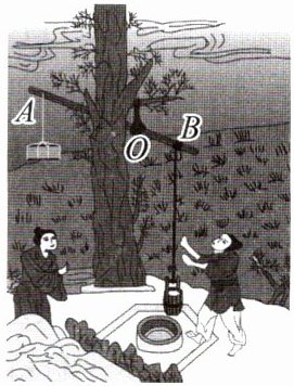 )A.向下拉绳放下空桶时桔槔为省力杠杆