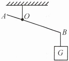 11 易错题 如图所示,用一根细绳将杠杆AOB在O点悬挂起来,B处挂一重物G,请你在杠杆上画出最小的动力$F_1$及对应的动力臂$L_1,$使杠杆在图中位置平衡.