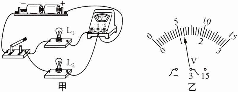 (3)改正错误后,再次闭合开关,电压表示数如图乙所示,则灯泡$L_{2}$电压是______V.