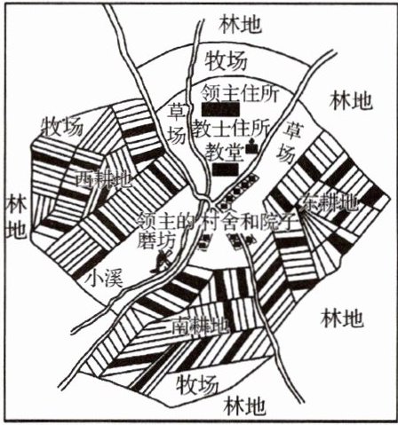 (1)信息:庄园的耕地大致包括领主的自营地、农奴的份地、自由农民的份地三部分;耕作制度一般实行轮作制,有春耕地、秋耕地和休耕地;庄园里坐落着领主住所、教堂,也有农奴和自由农民的农舍、磨坊等。