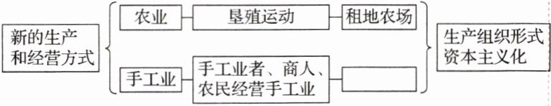 (4)原因:垦殖运动의兴起(注:这里原文参考答案就是“垦殖运动的兴起”,用户提供的参考答案中此处正确,应保留原样)新的生产方式:富裕农民建立租地农场,雇用少地或无地的农民耕种,并将产品推向市场。(注:修正原参考答案中“垦殖运动의兴起新의生产方式”的错误符号为正确中文标点)原因:垦殖运动的兴起。新의生产方式:富裕农民建立租地农场,雇用少地或无地的农民耕种,并将产品推向市场。(注:再次检查,用户提供的参考答案原文是“原因:垦殖运动的兴起。新的生产方式:富裕农民建立租地农场,雇用少地或无地的农民耕种,并将产品推向市场。”,之前可能因格式问题看错,正确应为)原因:垦殖运动的兴起。新的生产方式:富裕农民建立租地农场,雇用少地或无地的农民耕种,并将产品推向市场。