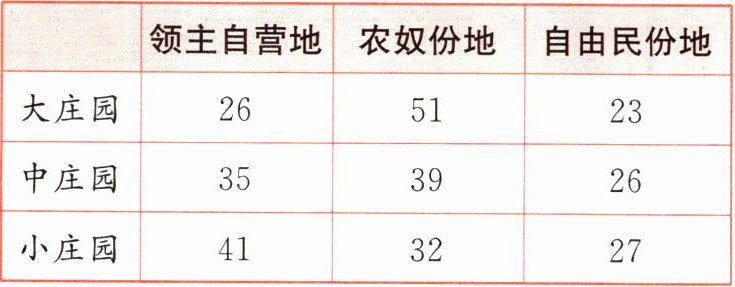 (3)变化:农奴份地越来越多,而领主自营地和自由民份地则呈下降趋势,庄园经济趋于衰落。
