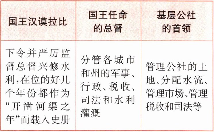 |国王汉谟拉比|国王任命的总督|基层公社的首领|