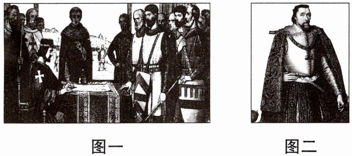 (1)图一所示是 1215 年英王签署《大宪章》的场景,《大宪章》维护什么利益?它确立的基本原则是什么?