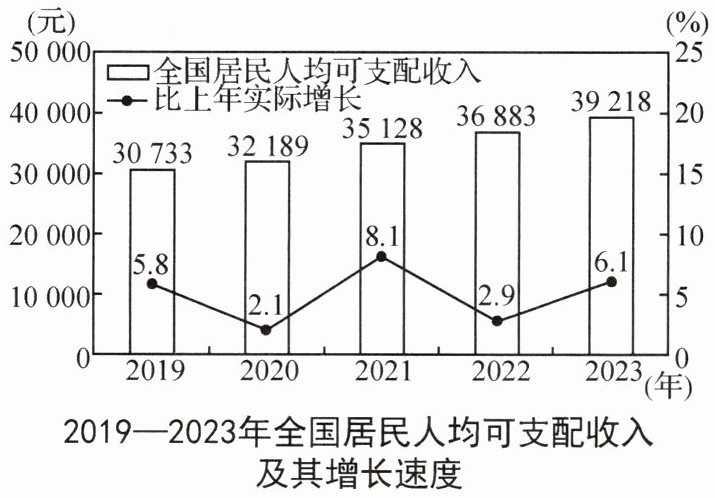 注:2019—2023 年,我国国内生产总值增长速度(%)分别为 6.1、2.3、8.1、3.0、5.2。