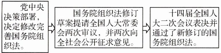 |党中央决策部署,决定修改完善国务院组织法。|国务院组织法修订草案提请全国人大常委会两次审议,并两次向全社会公开征求意见。|十四届全国人大二次会议表决并通过了新修订的国务院组织法。|