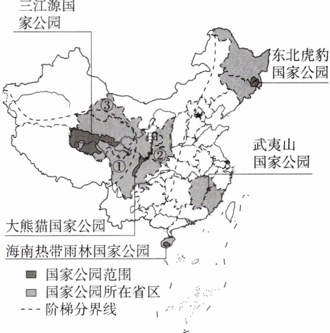「2025福建福州福清期中」读“中国第一批国家公园示意图”,完成7—8题。