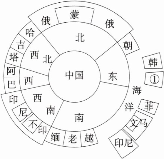 (1)①朝鲜 ②俄罗斯 ③蒙古 ④哈萨克斯坦 ⑨印度 ⑫缅甸 ⑬老挝 ⑭越南