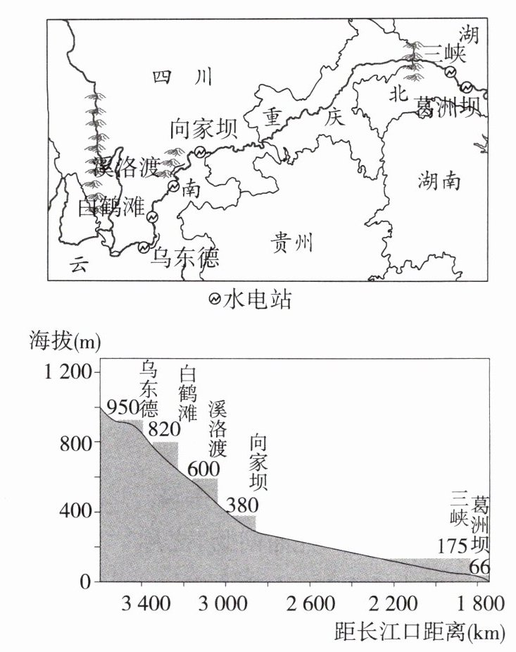 「2024山东青岛中考」长江干流上的6座巨型梯级水电站,是实施“西电东送”的国家重大工程之一,将大量电力输送到电力紧缺的我国东部地区。下图示意长江干流上的6座巨型梯级水电站。据此完成6—8题。