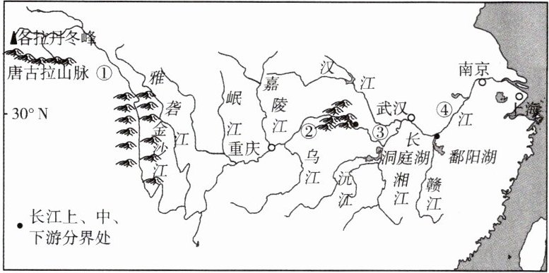 (3)分界点:上、中游的分界点M湖北______,中、下游分界点N江西______。