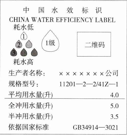 「2024 辽宁大连普兰店期末」水效标识是附在用水产品上的信息标签,用来表示产品的水效等级、用水量等性能指标。下图为某产品的水效标识。据此完成 11—12 题。
