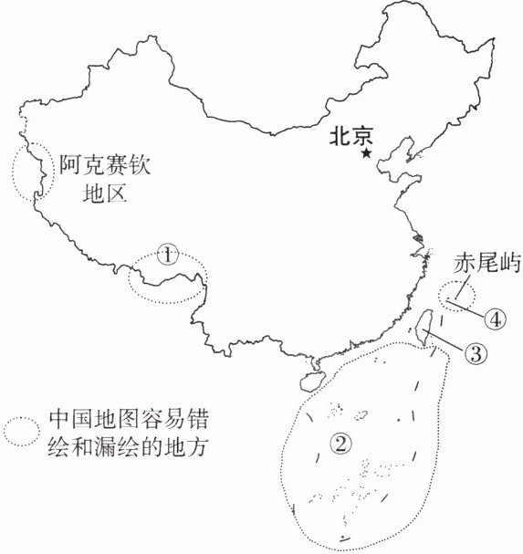 中国虽大,一点也不能少;地图虽小,一处也不能错。读图完成下题。