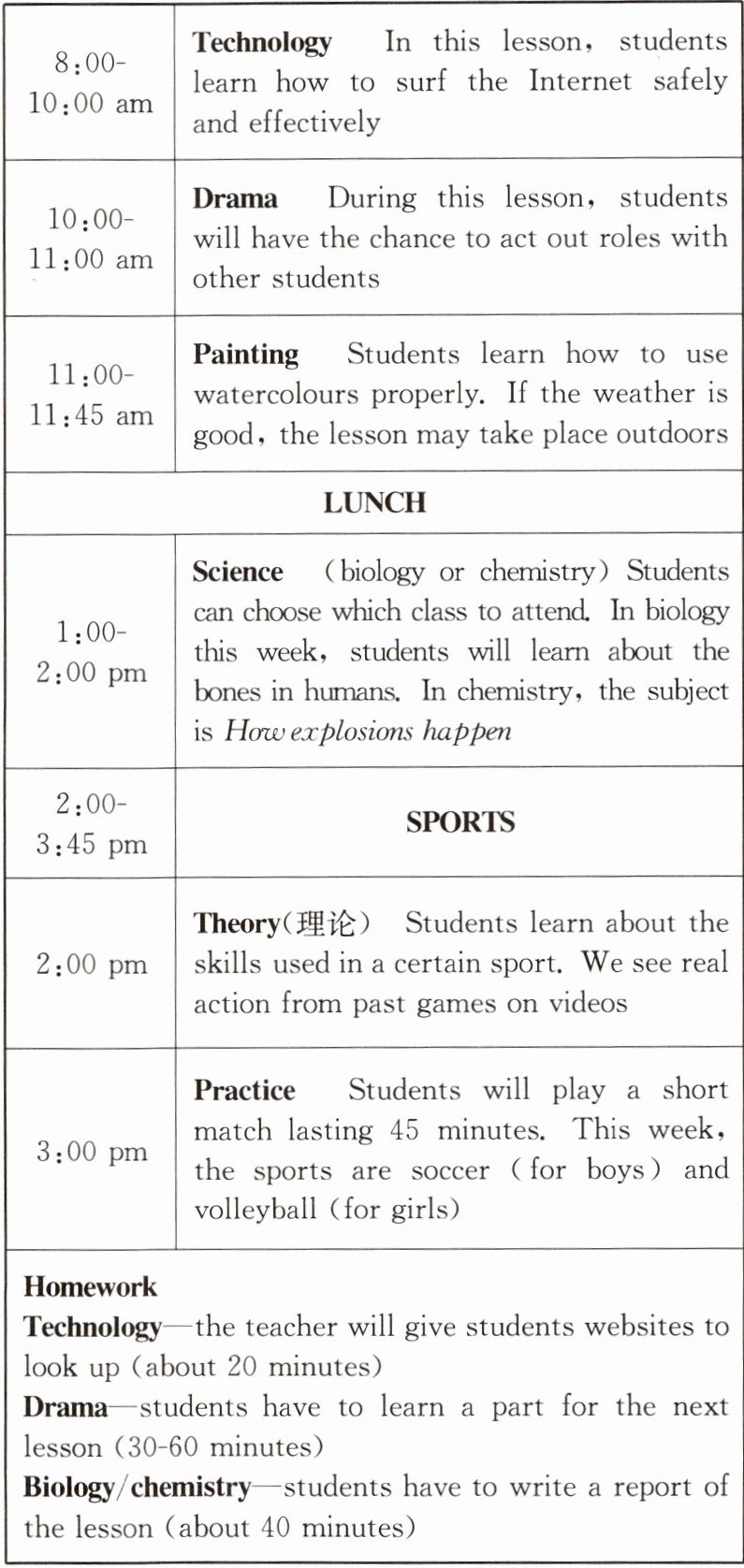 )1. What time does the drama lesson begin?A. At 8:00 am.