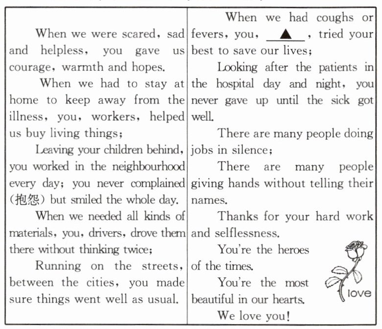 )3. What's the writer's purpose of writing this poem(诗)?A. To show his praises.