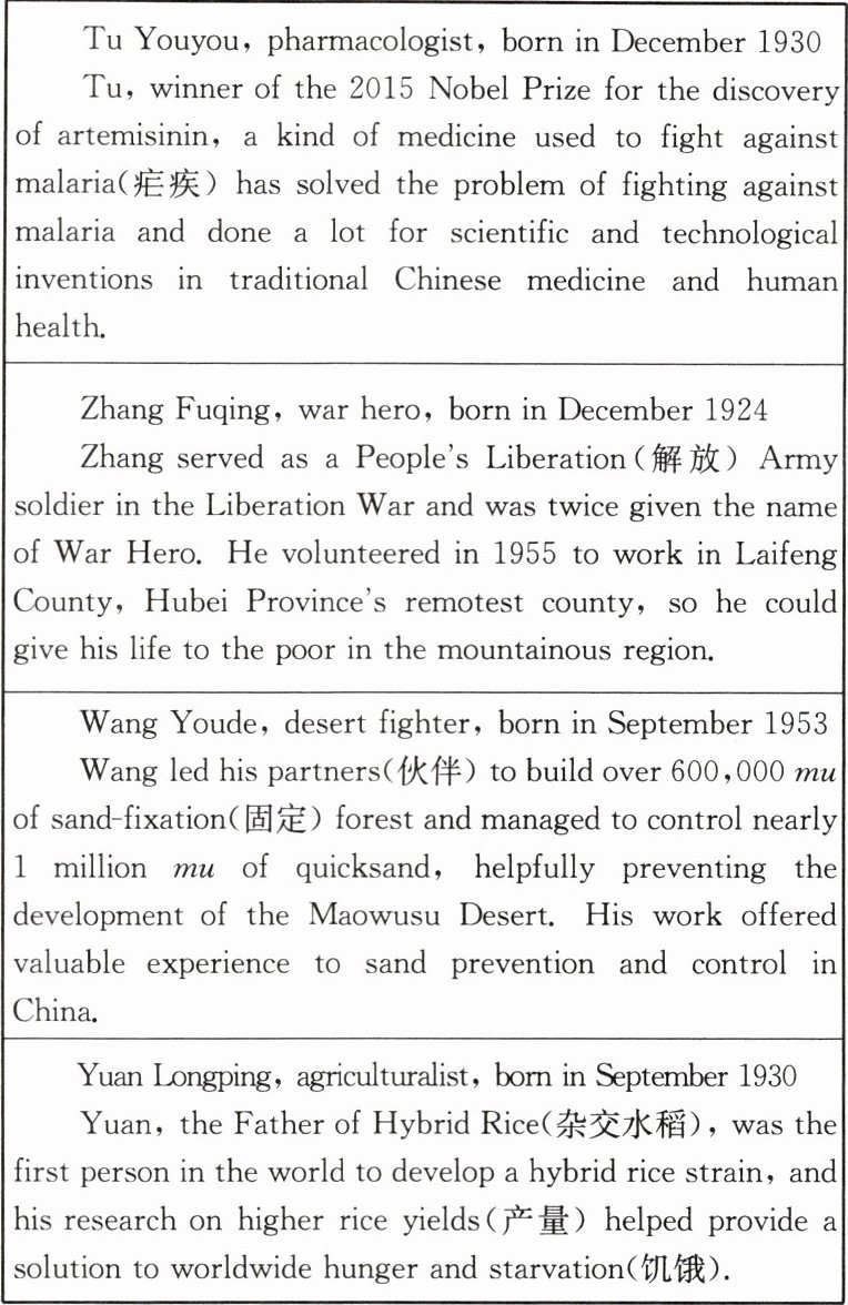 )3. Which is TRUE according to the passage?A. Zhang Fuqing is a desert fighter.