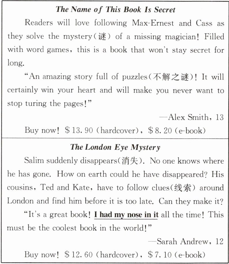 )3. How much money can you save if you buy an e-book of The London Eye Mystery instead of a hardcover of it?A. $\$5.50$.B. $\$5.70$.