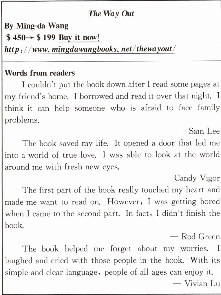 )3. What can we know from the passage?A. Ming - da Wang tells his family stories in the book.