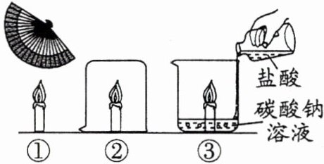 例4 点燃三支蜡烛分别进行如图实验,观察到三支蜡烛均熄灭。下列说法错误的是 (