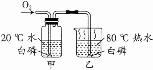 1. (2024 广州一模)用如图装置探究燃烧的条件。通入$O_2$前白磷均不燃烧,通入$O_2$后,甲中白磷不燃烧,乙中白磷燃烧。下列说法错误的是 (