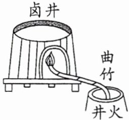 例3 我国是世界上最早利用天然气的国家。明代的《天工开物》记载了我国古代劳动人民利用天然气熬制井盐的过程(如图)。