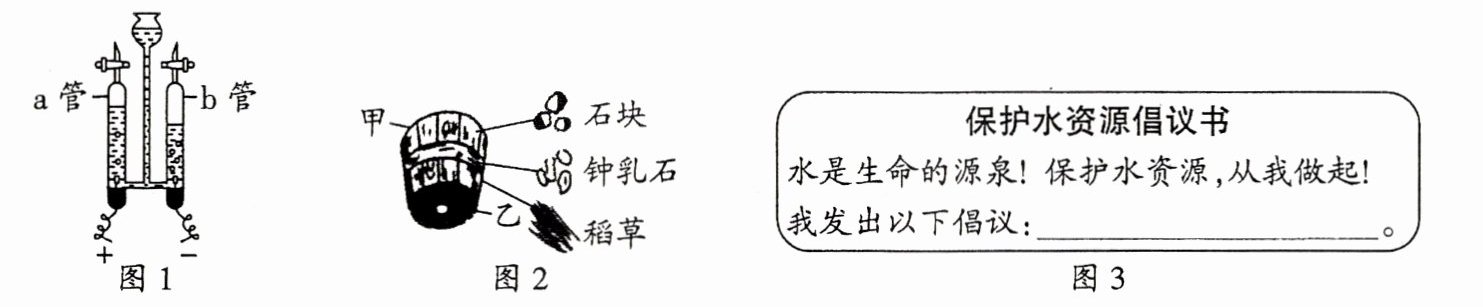 (3)图2是古人制作的“净水桶”,依次将稻草、钟乳石、石块装入桶中。钟乳石具有多孔结构,其作用是