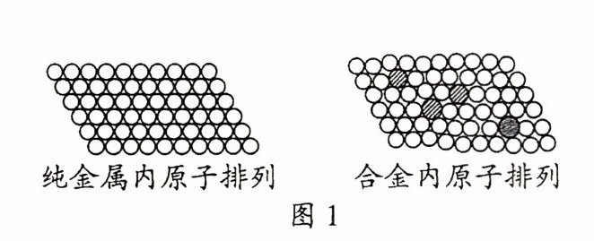 ①合金与其组成金属的性质存在差异。对比分析图1,从微观角度解释其原因: