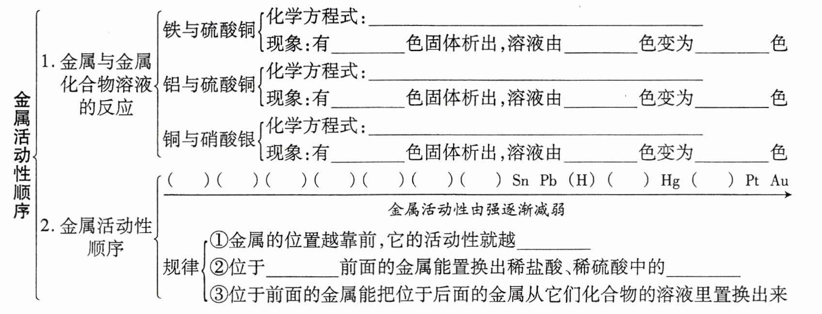 1. Fe+CuSO₄=FeSO₄+Cu 红 蓝 浅绿