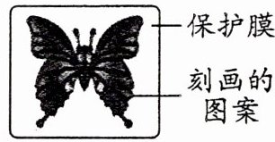 4. 制作金属蚀刻画的步骤如下:在金属板上贴保护膜,刻画图案,露出金属板,将溶液滴在露出的金属板上,图案形成后将膜揭下(如图)。现有以下两种蚀刻方法。