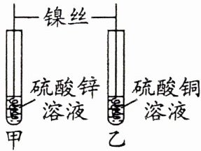 变式拓展 4. 为探究镍(Ni)、锌、铜的金属活动性顺序,小组进行如图实验。甲中无明显现象,乙中析出红色固体,则三种金属活动性由强到弱的顺序是(