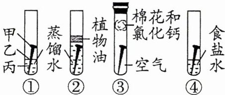 C.③中氯化钙的作用是吸收空气中的氧气和水蒸气