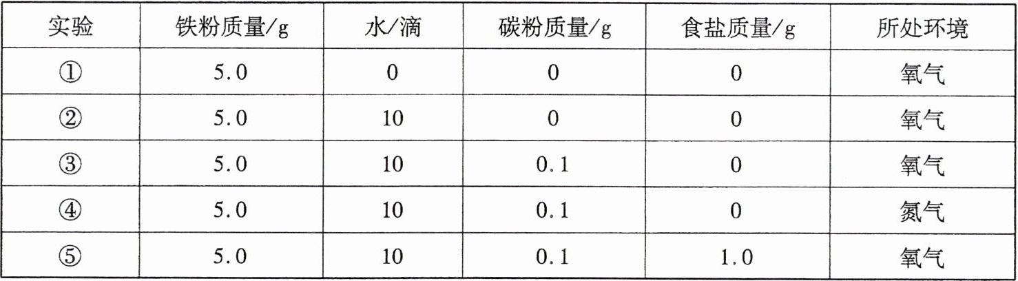 2. 兴趣小组对"铁制品锈蚀的影响因素"进行探究,实验数据如表。下列说法错误的是 (