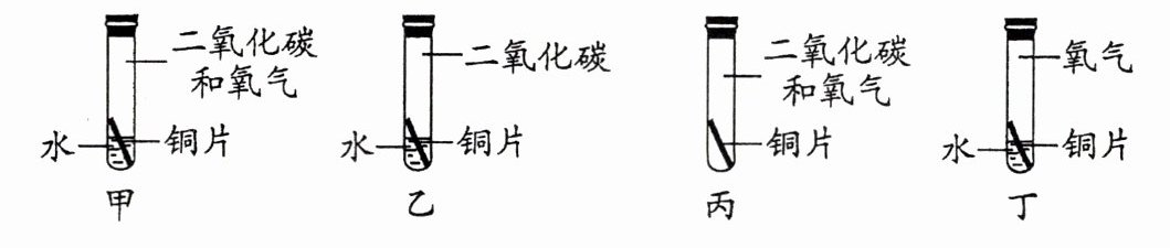 3. (拓展迁移)某同学根据铜绿的成分${Cu2(OH)2CO3}$作出猜想:铜锈蚀的条件除了有氧气和水外,还必须有二氧化碳。为证明"必须有二氧化碳",需要进行如图实验中的 (