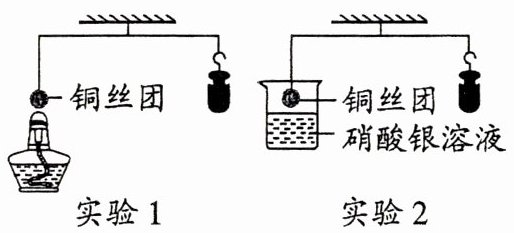 (用化学方程式解释)。(2)实验2:将铜丝团浸入硝酸银溶液一段时间后移出,观察到铜丝团表面