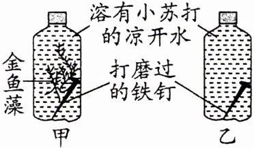3. (跨生物学)某同学用如图装置探究铁生锈的条件。两个透明塑料瓶中均装满溶有小苏打的凉开水(煮沸后迅速冷却的水),并将其放在阳光下照射(已知小苏打溶液在升温过程中会分解产生二氧化碳)。下列说法错误的是 (