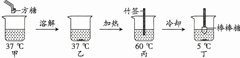 3. (家庭小实验)小灵学习了溶液的相关知识后,在家中按如图流程自制了一根"棒棒糖"。下列有关制作流程的分析中,正确的是 (