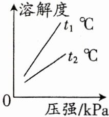 变式拓展 3.(2024 秋淄博期中)在特定温度下,某气体的溶解度随压强的变化情况如图。若$t_1℃$对应的温度是20℃,则$t_2℃$对应的温度可能是(
